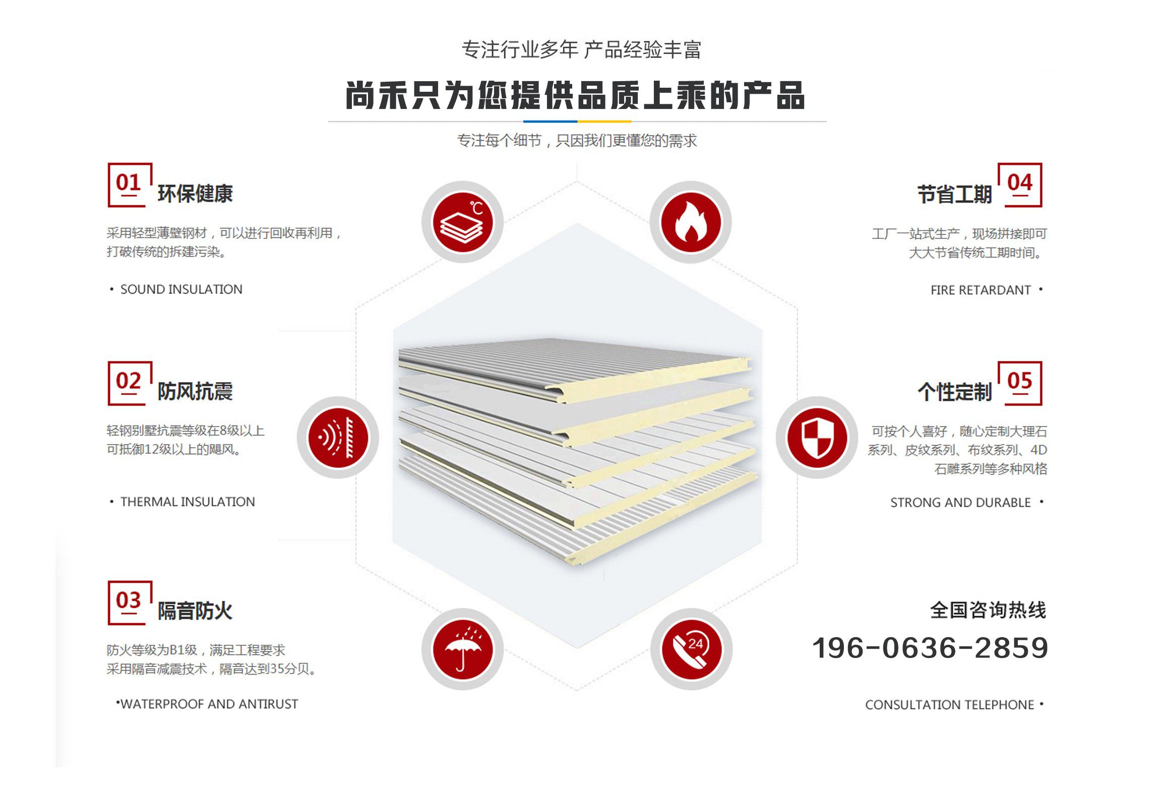 山東尚禾經(jīng)貿(mào)有限公司是集板材設(shè)計(jì)、研發(fā)、生產(chǎn)、施工、一體化的科技公司,并在同行業(yè)中率先通過了質(zhì)量、環(huán)境、安全管理體系認(rèn)證。公司2011年投入資金2000余萬元引進(jìn)世界先進(jìn)的聚氨酯節(jié)能板連續(xù)生產(chǎn)線、意大利進(jìn)口發(fā)泡系統(tǒng),采用六組份在線自動(dòng)操作混合澆注技術(shù),在線一次性完成社會(huì)配料中心或工廠的配比混合工藝,并可以根據(jù)溫度在線自動(dòng)調(diào)整,從而生產(chǎn)處與眾不同的高強(qiáng)度、節(jié)能型、綠色環(huán)保的聚氨酯夾芯板。(其使用年限高于同行業(yè)其他品牌5-10年) 公司主要經(jīng)營范圍包括聚氨酯夾芯板,PU夾芯板,冷庫板,潔凈板,聚氨酯冷庫板,冷庫保溫板的設(shè)計(jì)、生產(chǎn)、銷售、技術(shù)指導(dǎo)、安裝及一體、以及進(jìn)出口業(yè)務(wù),是中部六省最大的綠色節(jié)能建材生產(chǎn)基地。聚氨酯夾芯板年產(chǎn)200萬平方米、PU夾芯板、冷庫保溫板500萬平方米、鏈整產(chǎn)業(yè)綜合實(shí)力,開創(chuàng)了六省至中西部創(chuàng)新型中小名企總部基地,并將著力推進(jìn)中國中西部地區(qū)集成房屋住宅產(chǎn)業(yè)化發(fā)展進(jìn)程。 科技創(chuàng)新、節(jié)能典范。千萬間始終秉承“誠信、合作”的企業(yè)文化精髓,長期致力于鋼板材結(jié)構(gòu)節(jié)能建筑產(chǎn)業(yè),愿與社會(huì)各界攜手合作,共鑄綠色、環(huán)保美好未來。 產(chǎn)品具有良好的絕熱、阻燃、隔音、環(huán)保、耐久性能,可廣泛應(yīng)用于工業(yè)、商用建筑內(nèi)外墻、以及民用建筑外墻保溫、空調(diào)通風(fēng)系統(tǒng)、專用防火保溫門等領(lǐng)域。 我們始終秉承...